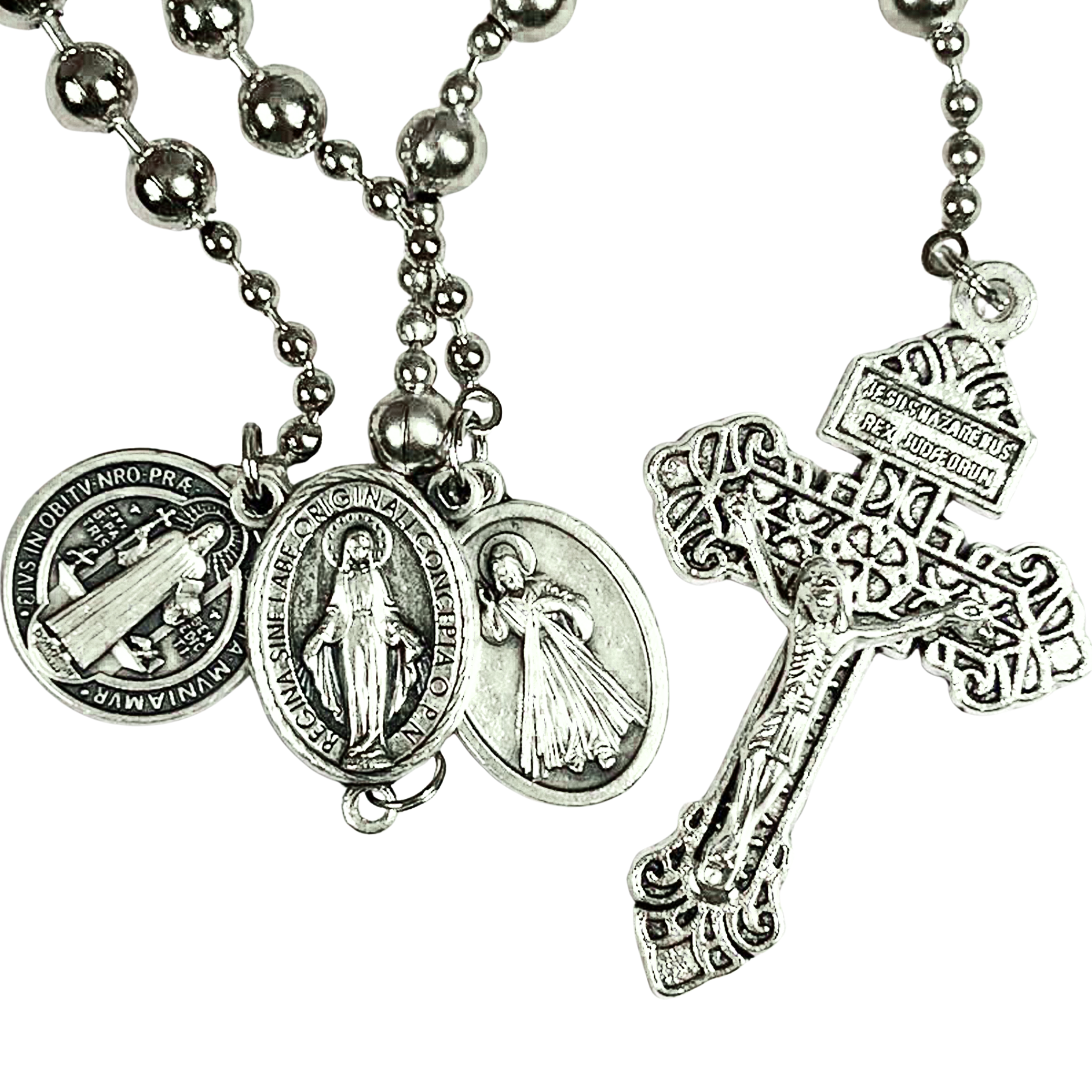 • Combat Rosary Construction: Stainless steel chain and parts, welded for strength.
