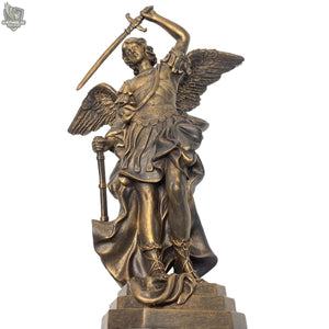 This statue of St. Michael the Archangel recalls the legendary vision during the plague of 590, when St. Michael appeared above Castel Sant’Angelo in Rome, sheathing his sword as a sign that the plague had ended. The statue is a reminder of St. Michael’s protection and intercession in spiritual battle. Crafted with detailed features, it makes an inspiring devotional centerpiece for home, office, or chapel.