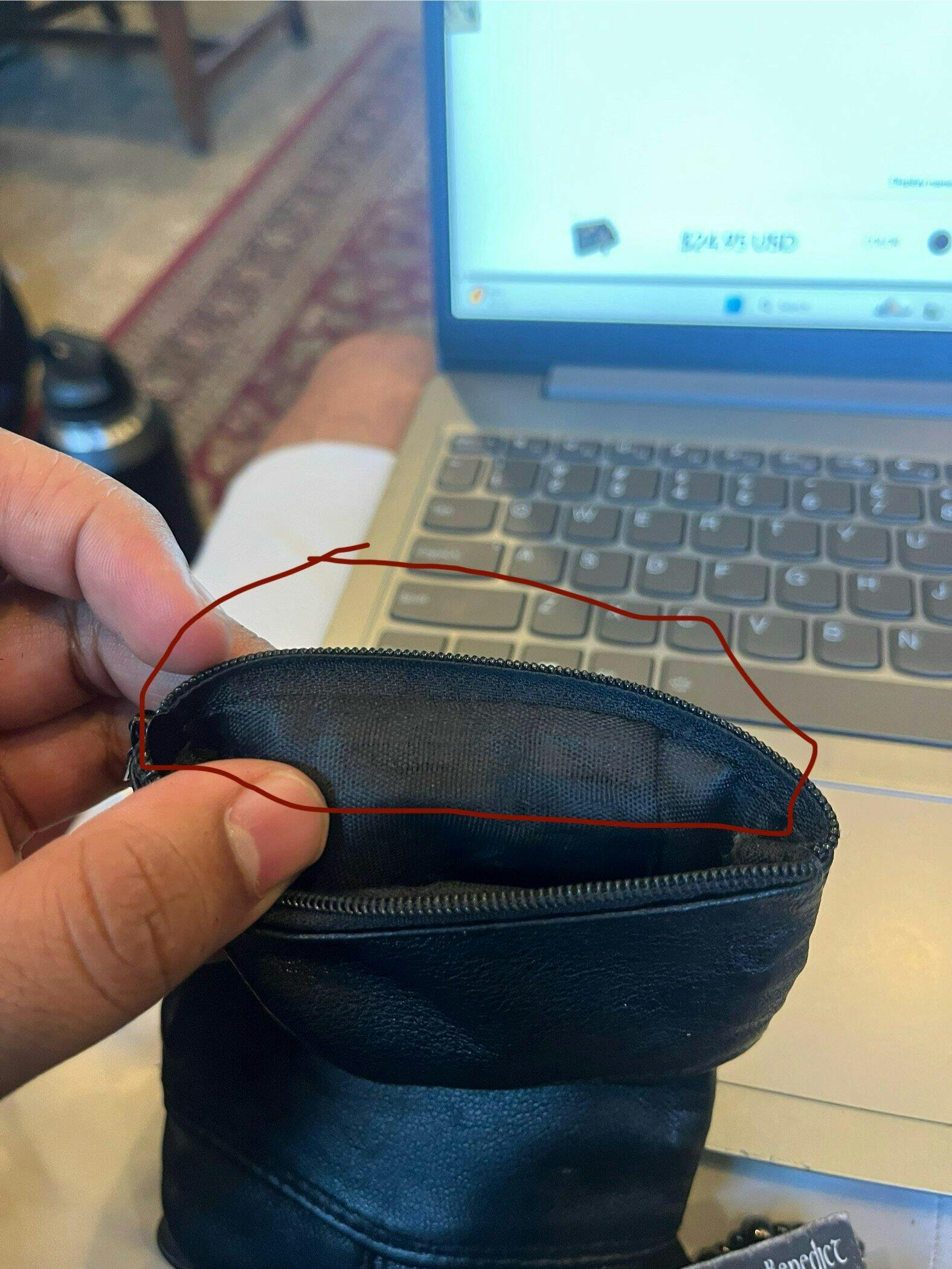 Comparing the one I got to the product photos, the zippers don't match. That little logo that appears in the pictures doesn't show up on the actual product. I own three of them, but one I had to throw out because the inside lining completely tears. I've had the pouches since May 13, 2025 (I ordered them on May 7), so one only lasted 141 days in my pocket, hardly "rugged." The first photo indicates the failure point, marked by the oval-shaped circle; the following pictures show a smaller area where damage occurred after 141 days. The final photo shows what the product looks like.